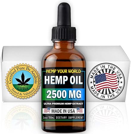 Amazon Com Hemp Your World Hemp Oil Drops Made In Usa 100 Organic Hemp Oil Extract For Pain Relief Anti Inflammatory Joint Support Sleep Aid Supplements No Thc 2500 Health Personal Care