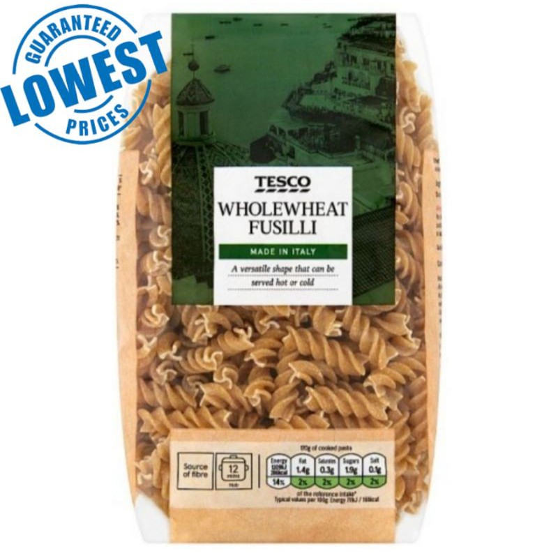 Tesco Whole Wheat Fusilli Pasta Made In Italy 100 Durum Wholewheat Semolina 500 Grams Shopee Philippines