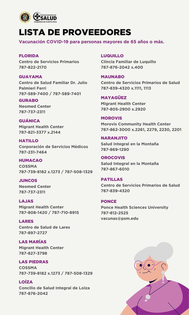 Jenniffer Gonzalez On Twitter Atencion Si Usted O Un Familiar Tiene 65 Anos O Mas Sepa Que Ya Puede Solicitar Cita Para Obtener La Vacuna Contra El Covid19 Aqui La Lista De