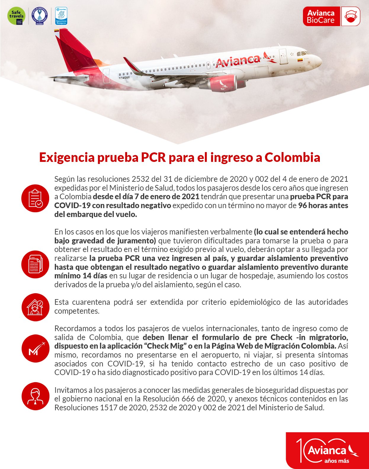Avianca On Twitter Atencion Viajeros A Partir De Este 7 De Enero Todos Los Pasajeros Desde Cero Anos Que Ingresen A Colombia Tendran Que Presentar Una Prueba Pcr Para Covid 19 Con Resultado Negativo